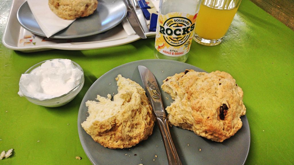 Des scones avec la crème qui va avec (vegan bien sûr!) à Exmouth, ville au bord de la mer à 25 minutes en voiture de Exeter
