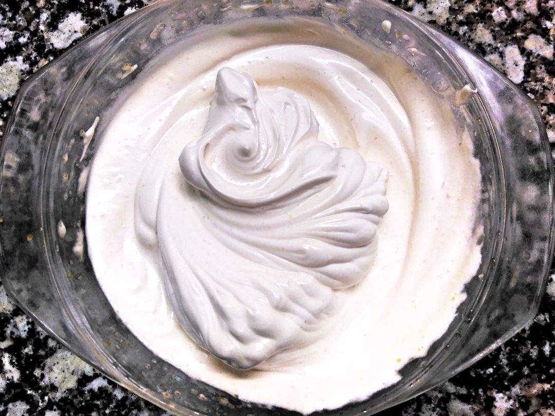 - Beaucoup de recettes conseillent de verser le sucre une fois monté mais je le mets toujours pendant, c’est au choix.
